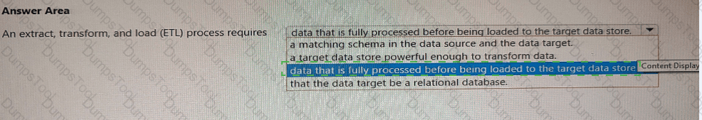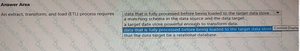 Your company plans to load data from a customer relationship management (CRM) system to a data warehouse by using an extract load, and transform (ELT) process.