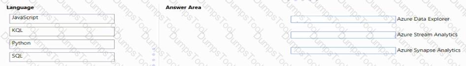 To answer, drag the appropriate language from the column on the left to its service on the right. Each language may be used once, more than once, or not at all.