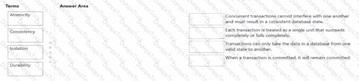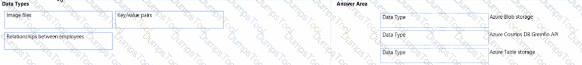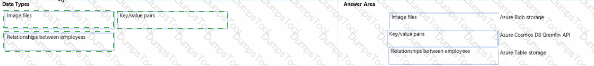 To answer, drag the appropriate data types from the column on the left to its service on the right. Each data type may be used once, more than once, or not at all.