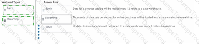 To answer, drag the appropriate workload type from the column on the left to its scenario on the right. Each workload type may be used once, more than once, or not at all.