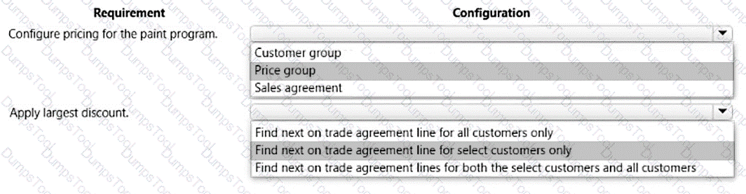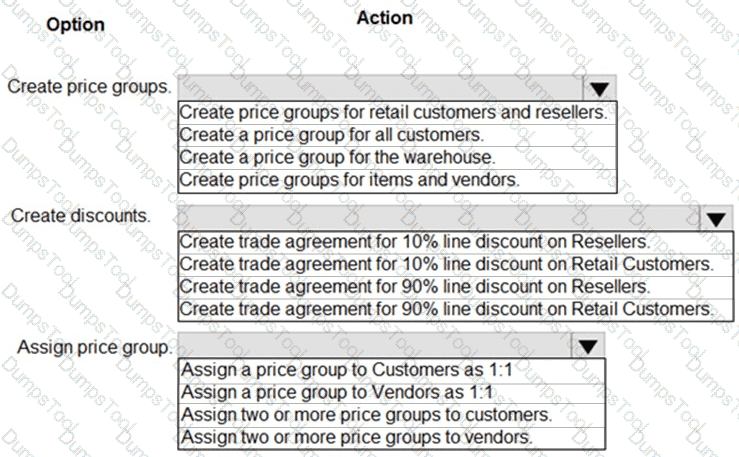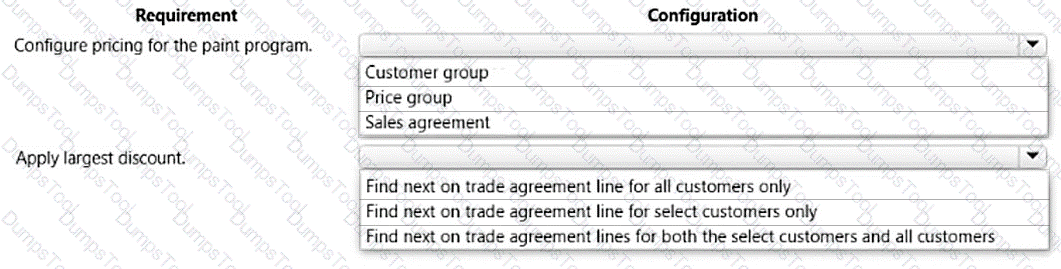 Which configurations should you use for the rebates? To answer, move the appropriate configurations to the correct requirements. You may use each configuration once, more than once, or not at all. You may need to move the split bar between panes or scroll to view content.