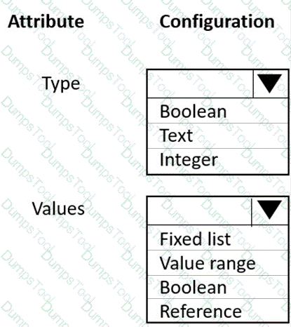 Which configuration should you use for each attribute. To answer, select the appropriate option in the answer area.