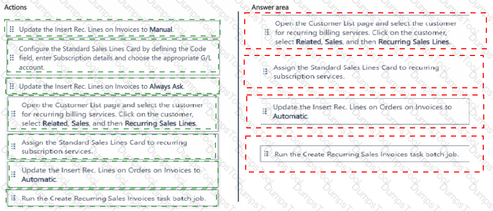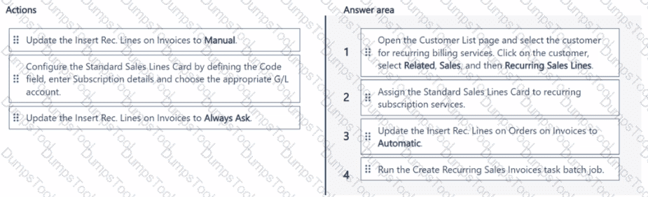 You are implementing Dynamics 365 Business Central for a company. The company provides subscription services to their customers. The subscription invoices are almost identical each month.