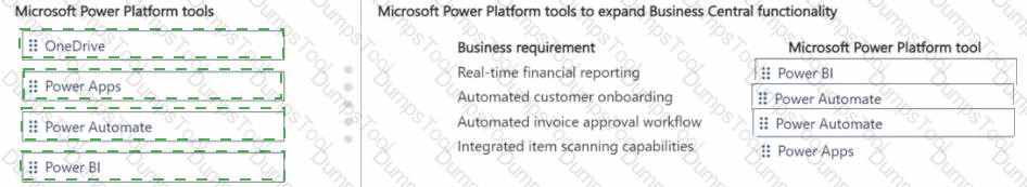 A company is implementing Business Central. The company is evaluating Microsoft Power Platform integration benefits. The company has the following business requirements: