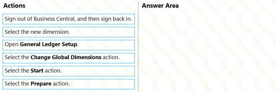 Which three actions should you perform in sequence? To answer, move the appropriate actions from the list of actions to the answer area and arrange them in the correct order.