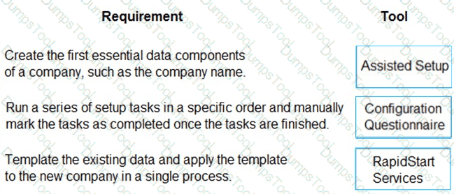 Which tools should you use? To answer, drag the appropriate tools to the correct requirements. Each tool may be used once, more than once, or not at all. You may need to drag the split bar between panes or scroll to view content.