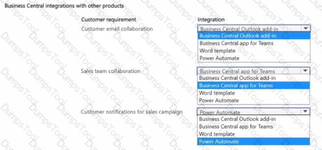 A company uses Dynamics 365 Business Central.