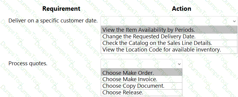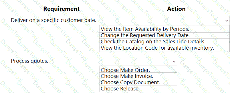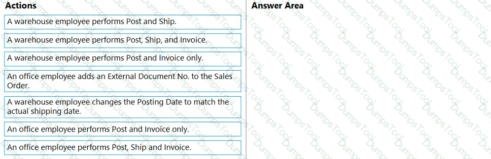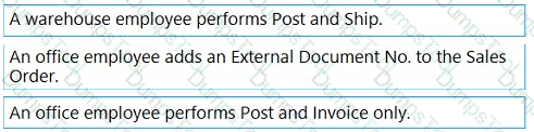A company uses Dynamics 365 Business Central. The company works with physical goods.