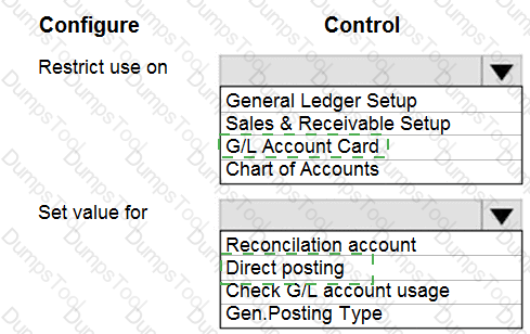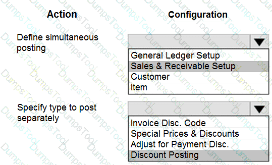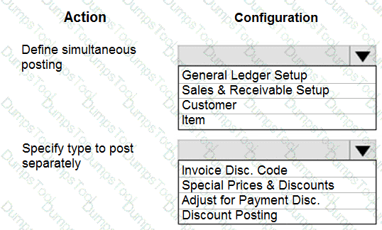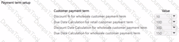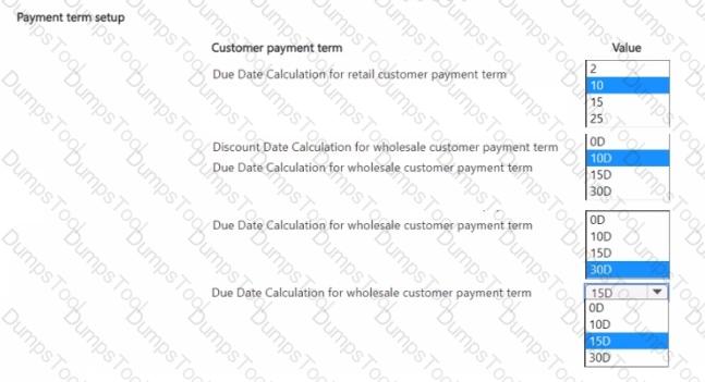 You need to configure the system to post to the receivables account for wholesale customers. Which two configurations should you use? Each correct answer presents part of the solution. NOTE; Each correct selection Is worth one point.