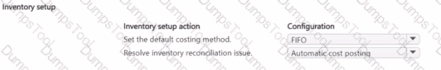 Which two inventory setup configurations should you use? To answer, select the appropriate options in the answer area.