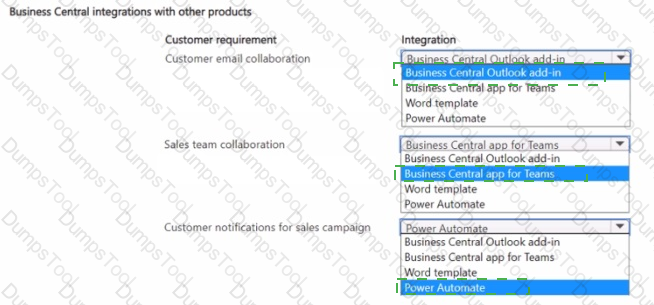 Which Microsoft integration aligns with each requirement? To answer, select the appropriate options in the answer area.