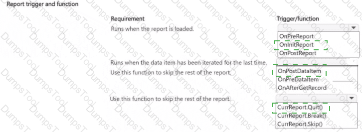 Which triggers and functions should you use? To answer, select the appropriate options in the answer area.