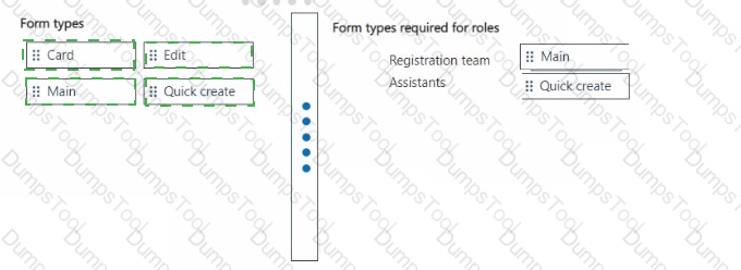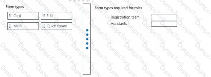 Which form types should you create? To answer, move the appropriate form types to the correct roles. You may use each form type once, more than once, or not at all. You may need to move the split bar between panes or scroll to view content.