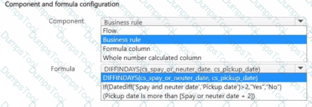 The canvas app requires a business rule to set the Business Type column to large if the customer size is greater than a specific currency value.