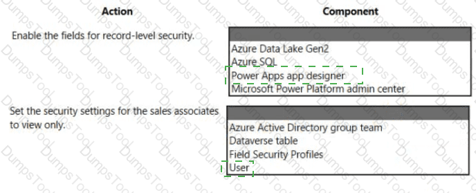 Which component for field-level security should you use? TO answer, select the appropriate options in the answer area.