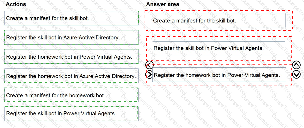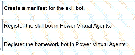Teachers in a school district use Azure skill bots to teach specific classes. Students sign into an online portal to submit completed homework to their teacher for review. Students use a Power Virtual Agents chatbot to request help from teachers.