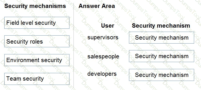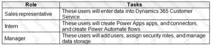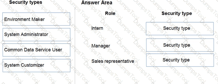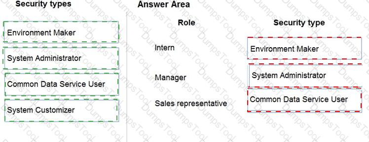 Which security roles should you use? To answer, drag the appropriate security roles to the correct users. Each security role may be used once, more than once, or not at all. You may need to drag the split bar between panes or scroll to view content.