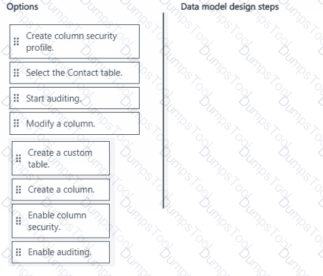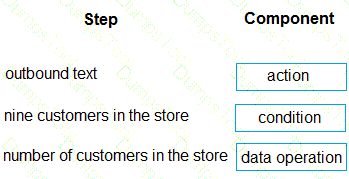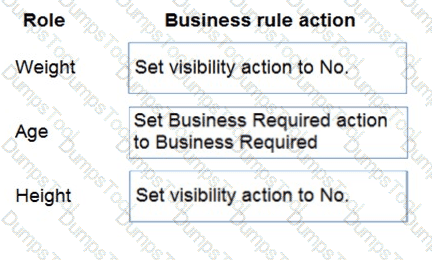 Which business rule actions should you use? To answer, drag the appropriate business rule actions to the correct fields. Each business rule action may be used once, more than once, or not at all. You may need to drag the split bar between panes or scroll to view content.