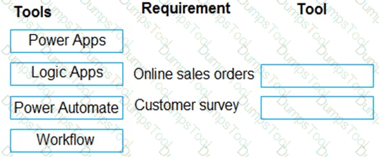 Which platform tools should you recommend? To answer, drag the appropriate tools to the correct requirements. Each tool may be used once, more than once, or not at all. You may need to drag the split bar between panes or scroll to view content.