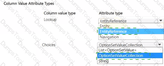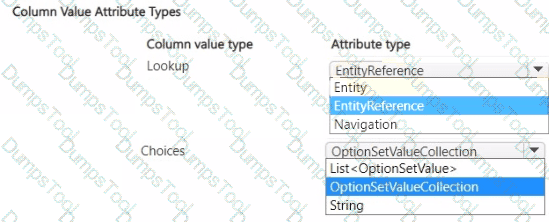 Which attribute type should you use? To answer, select the appropriate options in the answer area.