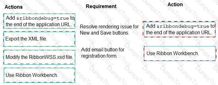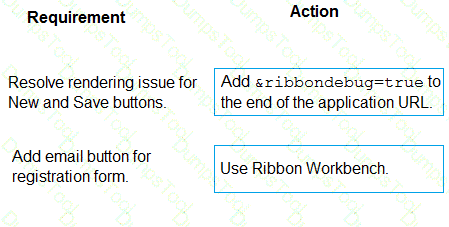 You need to implement ribbon display rules to control availability for the scoring command button. Which rule types should you use? To answer, select the appropriate options in the answer area. NOTE: Each correct selection is worth one point.