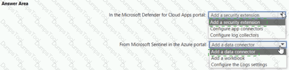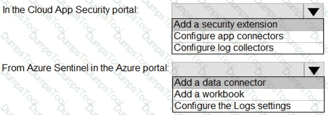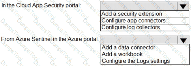 Which two actions should you perform in the Cloud App Security portal? Each correct answer presents part of the solution.