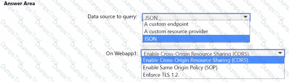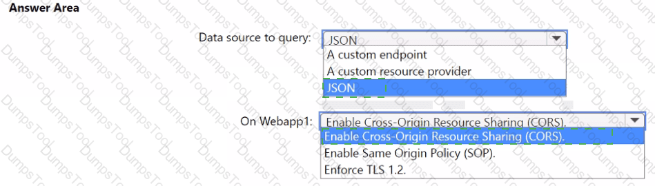 You need to implement the query for Workbook1 and Webapp1. The solution must meet the Microsoft Sentinel requirements. How should you configure the query? To answer, select the appropriate options in the answer area. NOTE: Each correct selection is worth one point.