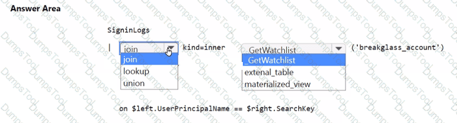 How should you complete the query? To answer, select the appropriate options in the answer area.