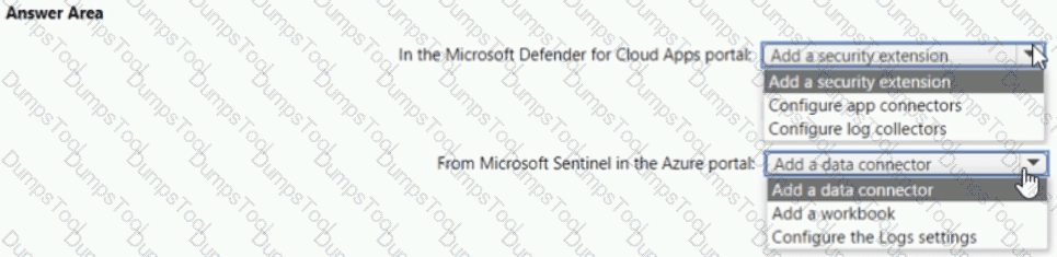You need to configure the Microsoft Sentinel integration to meet the Microsoft Sentinel requirements. What should you do? To answer, select the appropriate options in the answer area. NOTE: Each correct selection is worth one point.