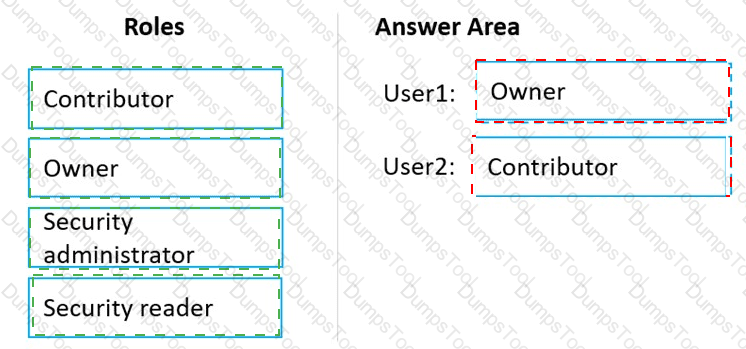 You have an Azure subscription linked to an Azure Active Directory (Azure AD) tenant. The tenant contains two users named User1 and User2.