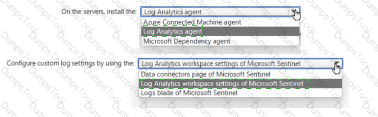 You need to upload custom logs from the on-premises servers to Microsoft Sentinel.