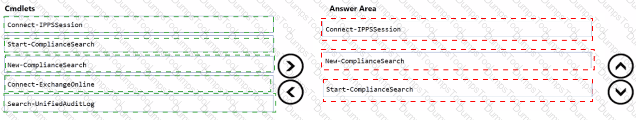 Which three cmdlets should you run in sequence? To answer, move the appropriate cmdlets from the list of cmdlets to the answer area and arrange them in the correct order.