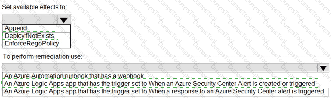 You need to implement Microsoft Defender for Cloud to meet the Microsoft Defender for Cloud requirements and the business requirements. What should you include in the solution? To answer, select the appropriate options in the answer area. NOTE: Each correct selection is worth one point.