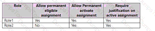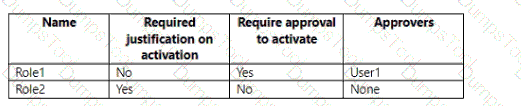 You have two Azure AD roles that have the Activation settings shown in the following table.
