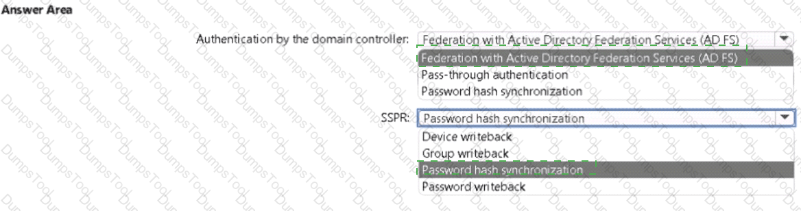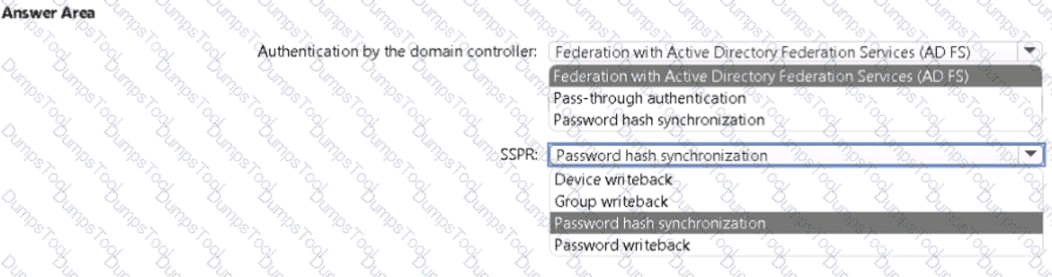 Your on-premises network contains an Active Directory domain that uses Azure AD Connect to sync with an Azure AD tenant. You need to configure Azure AD Connect to meet the following requirements: