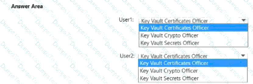 Which role should you assign to each user? To answer select the appropriate options in the answer area.