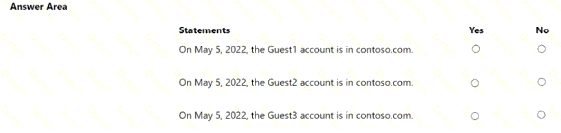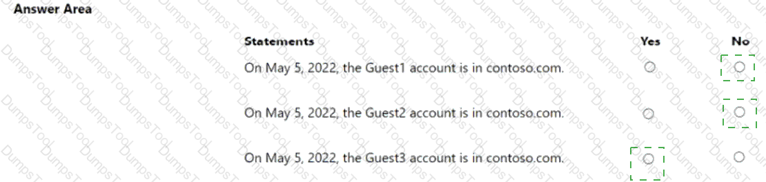 On April 1(2022, you invite a guest user named Guest3 to contoso.com.