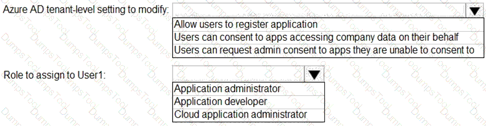 You need implement the planned changes for application access to organizational data. What should you configure?