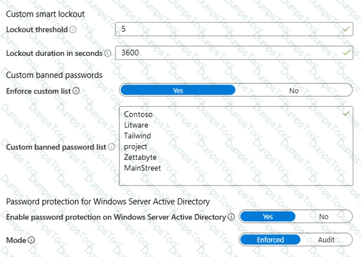 You configure Azure Active Directory (Azure AD) Password Protection as shown in the exhibit. (Click theExhibittab.)