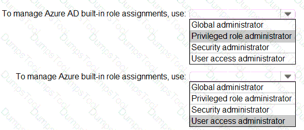You need to identify which roles to use for managing role assignments. The solution must meet the delegation requirements.