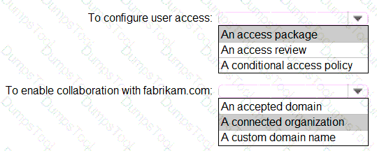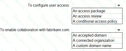 You plan to create an access package named package1 that will be accessible only to the users at Fabrikam.
