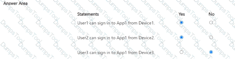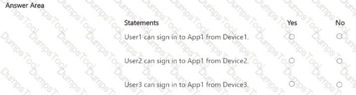 You have a Microsoft 365 subscription that contains three users named User1, User2, and User3 and an enterprise app named Appl. The subscription contains the devices shown in the following table.
