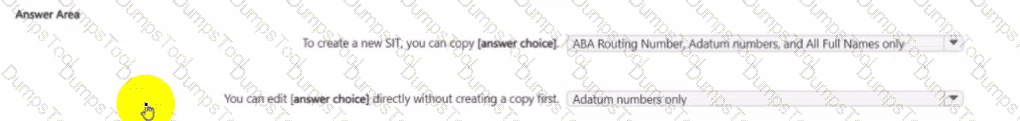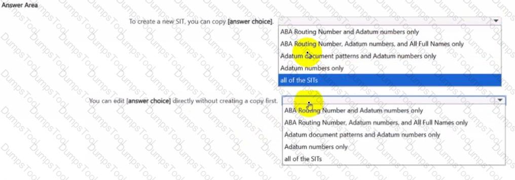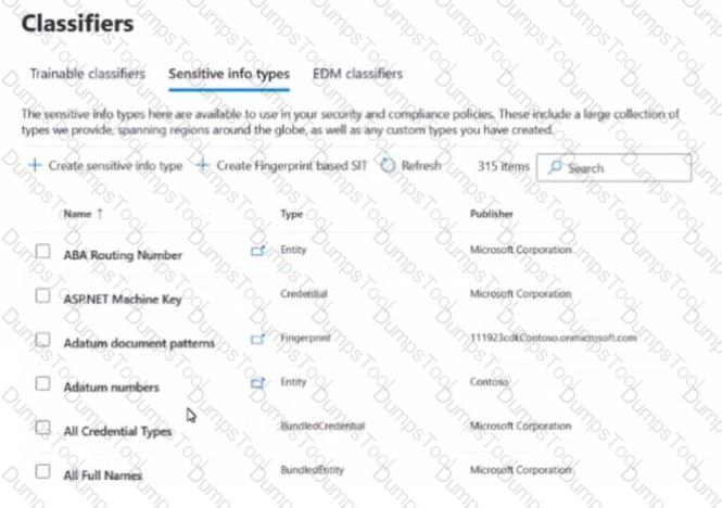 You have a Microsoft 36S subscription that contains the sensitive information types (SITs) shown in the following exhibit.