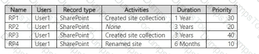 You have a Microsoft 365 E5 subscription that contains a retention policy named RP1 as shown in the following table.