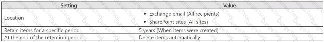 You create the retention policies shown in the following table.