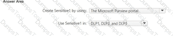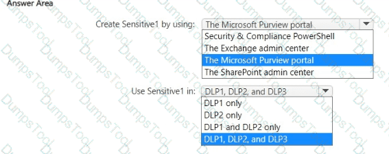What should you use to create Sensitive1, and in which DLP policies can you use Sensitive1? To answer, select the appropriate options in the answer area.