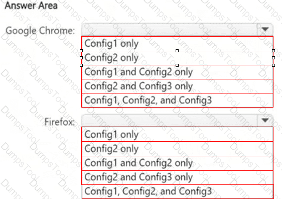 Each configuration uses either Google Chrome or Firefox as a default browser.
