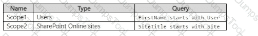 You have a Microsoft 365 E5 subscription that contains the adaptive scopes shown in the following table.