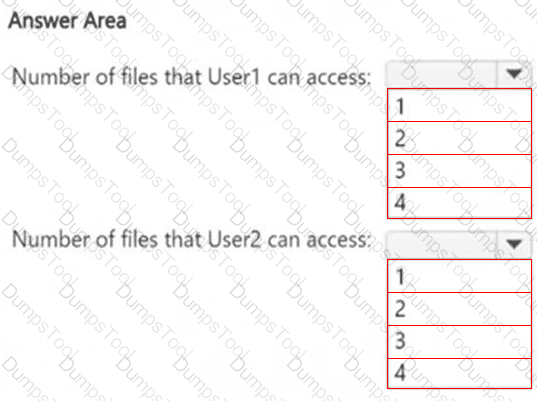 How many files in Site2 can User1 and User2 access after you turn on DLPpolicy1? To answer, select the appropriate options in the answer area.