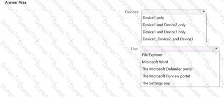 You have a Microsoft 365 E5 subscription. The subscription contains devices that are onboarded to Microsoft Purview and configured as shown in the following table.